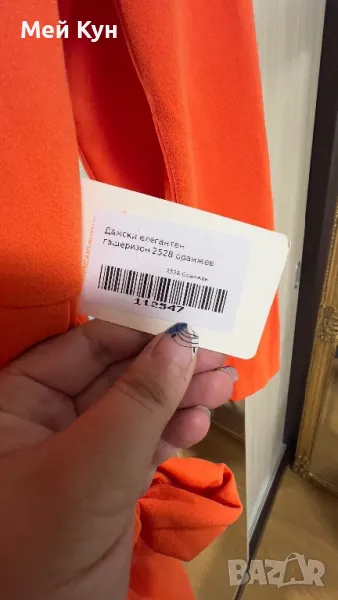 Гащеризонът е с джобове и колан. От леко разтеглива материя. Цвят оранж
