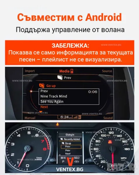 1. Адаптерът не е съвместим с Audi MMI 2G (2004–2009) и Audi Navigation Plus.