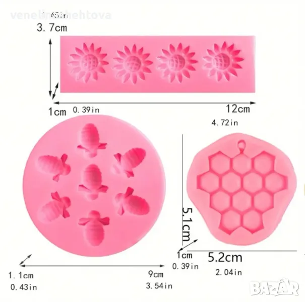 Комплект от 3 броя молда, пчелички, цветя, пчелна пита