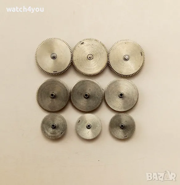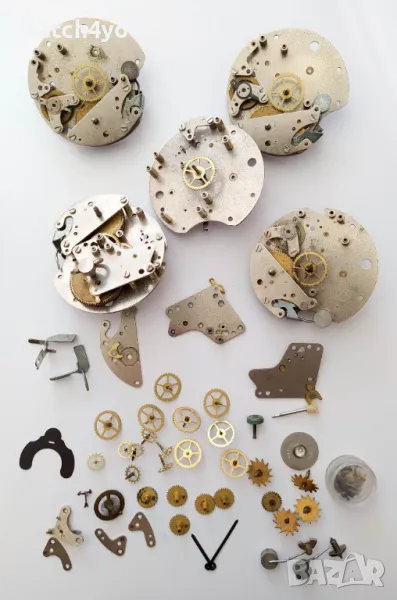 Разполагаме с богат набор от части за механични и кварцови часовници, будилници, стенни часовници: Баланси, Оси, Анкери, Ремонтоари, Коронки, Пружини, Колелета, Колела Уплътнения за заден капак, Уплътнители и др.