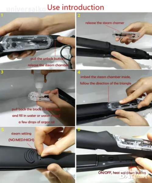 Професионална кератинова парна преса за коса, керамична преса, снимка 1 - Преси за коса - 49999645 Професионална кератинова парна преса за коса, керамична преса, снимка 2 - Преси за коса - 49999645 Професионална кератинова парна преса за коса, керамична преса, снимка 3 - Преси за коса - 49999645 Професионална кератинова парна преса за коса, керамична преса, снимка 4 - Преси за коса - 49999645 Професионална кератинова парна преса за коса, керамична преса, снимка 5 - Преси за коса - 49999645 Професионална кератинова парна преса за коса, керамична преса, снимка 6 - Преси за коса - 49999645 1/6