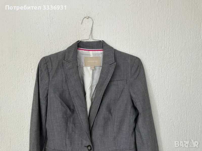 Вталено сиво сако Banana Republic, размер XS, от рамо до рамо - 37 см, от мишница до мишница - 45 см, дължина - 62 см, 95% вълна, 5% спандекс