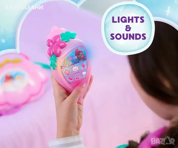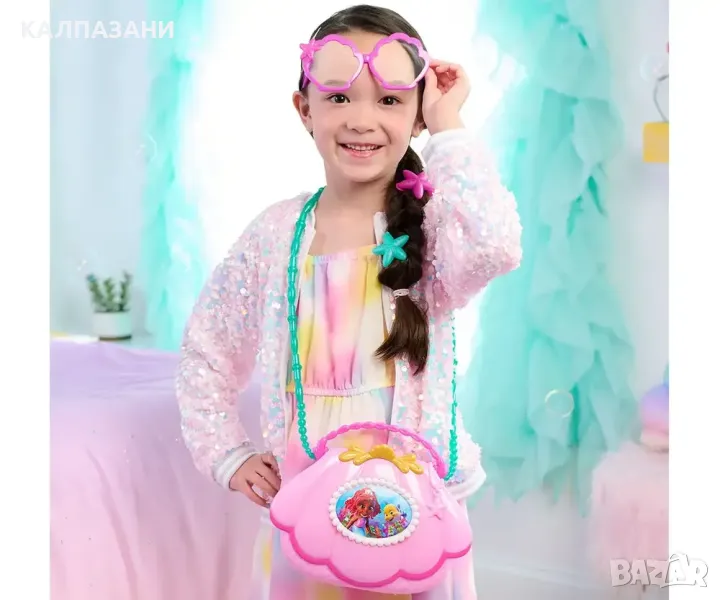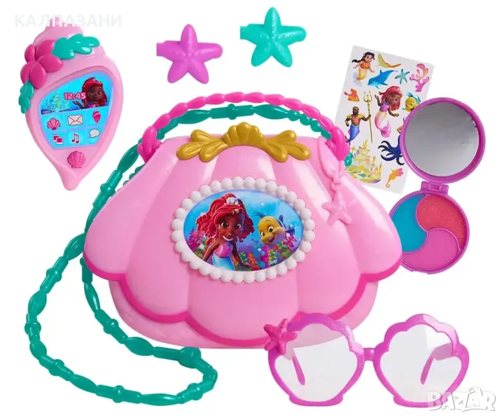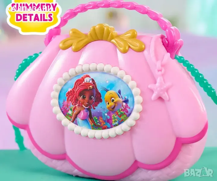 Комплектът чанта с аксесоари Disney Junior Ariel Mer-Mazing Bag Set дава на малките стилни приключения в движение. Вдъхновен от хита на Disney Junior, Ариел, този очарователен комплект е пълен с аксесоари, които правят ролевата игра блестящо забавление. Чантата с форма на черупка има искрящо покритие и може да се носи на рамо или през рамо с туркоазена лента и розова дръжка. Комплектът включва лилави играчки очила, две искрящи фиби с форма на морски звезди, лист със стикери и играчка "черупка" телефон. Натиснете бутоните, за да видите светлини и да чуете сладки фрази от шоуто (само на английски език). За още повече забавление в Атлантика, събирайте допълнителни играчки с русалки, кукли и аксесоари, вдъхновени от Disney Junior’s Ариел (всяка се продава отделно). Тази очарователна говореща играчка за предучилищна възраст е чудесен подарък за рожден ден, празник или всякакви изненади за феновете на играчките от Disney и деца на възраст 3 години и нагоре. Черупката-телефон работи с 3 х AG13 батерии (включени).
