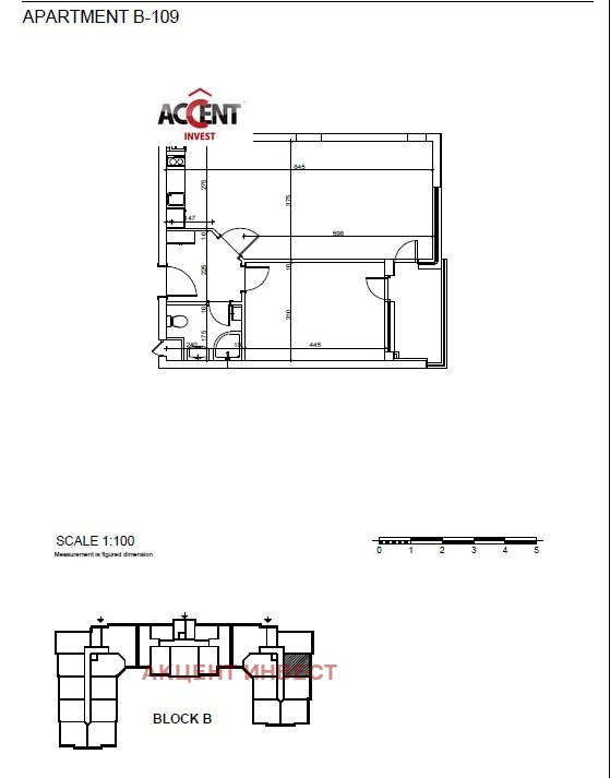 Акцент Инвест предлага на Вашето внимание обзаведен двустаен апартамент в