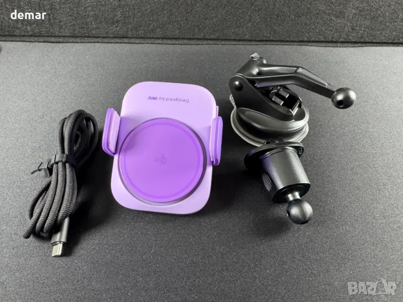 INIU Mag-safe зарядно за кола, Qi2 сертифицирано ултрастабилно безжично зарядно, 15W, лилаво