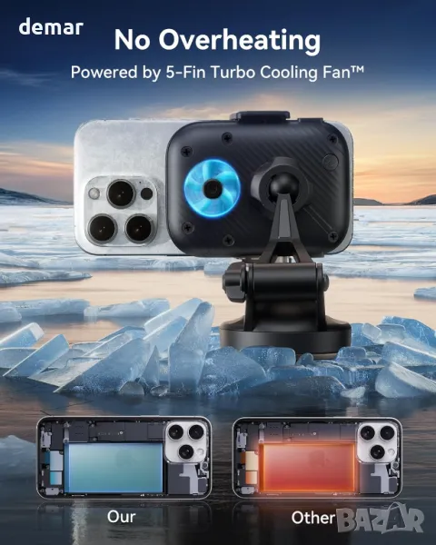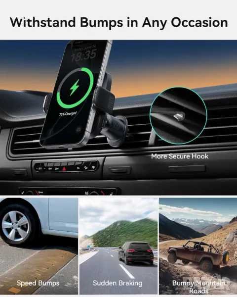 Това сертифицирано Qi2 15W зарядно за кола предлага до два пъти по-висока скорост на зареждане от стандартните модели, подкрепено от вграден турбо вентилатор за охлаждане, който предотвратява прегряване. Неговата система за двойно заключване – магнитно залепване плюс скоби – държи телефона ви здраво дори по неравни пътища. Със седем персонализируеми LED цвята, които запомнят последната ви настройка, то добавя персонален щрих към интериора на вашия автомобил. Напълно регулируемото рамо и сферичният шарнир осигуряват оптимални ъгли на видимост за безопасно използване на GPS и разговори със свободни ръце. Инсталацията е гъвкава, с опции както за вендуза, така и за щипка за вентилационния отвор, което го прави подходящо за почти всяко превозно средство или дори за бюро.