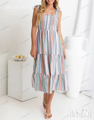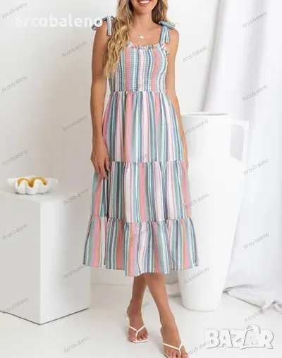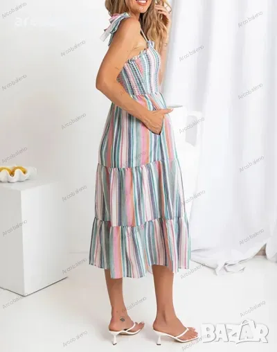 Нов стил дамска рокля с презрамки с цветни контрастни райета