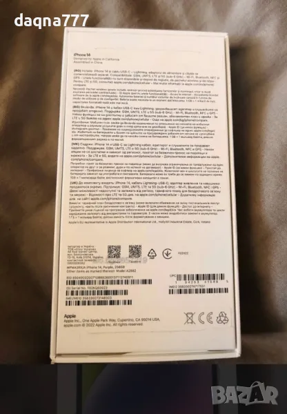 Само кутия от Айфон 14 Пърпъл 256 GB → Обява 50002139