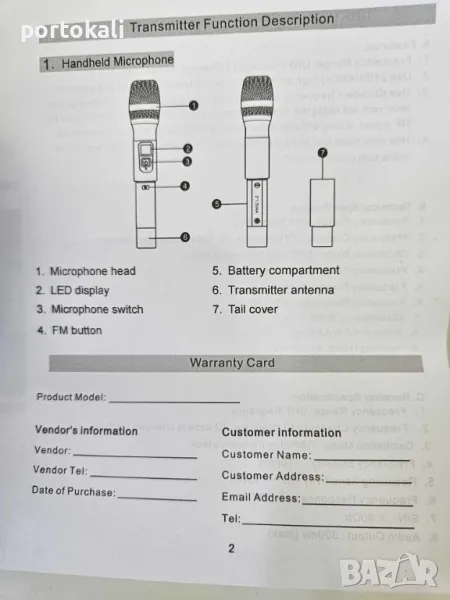 - Бутон за вкл.изкл. на приемника и микрофоните