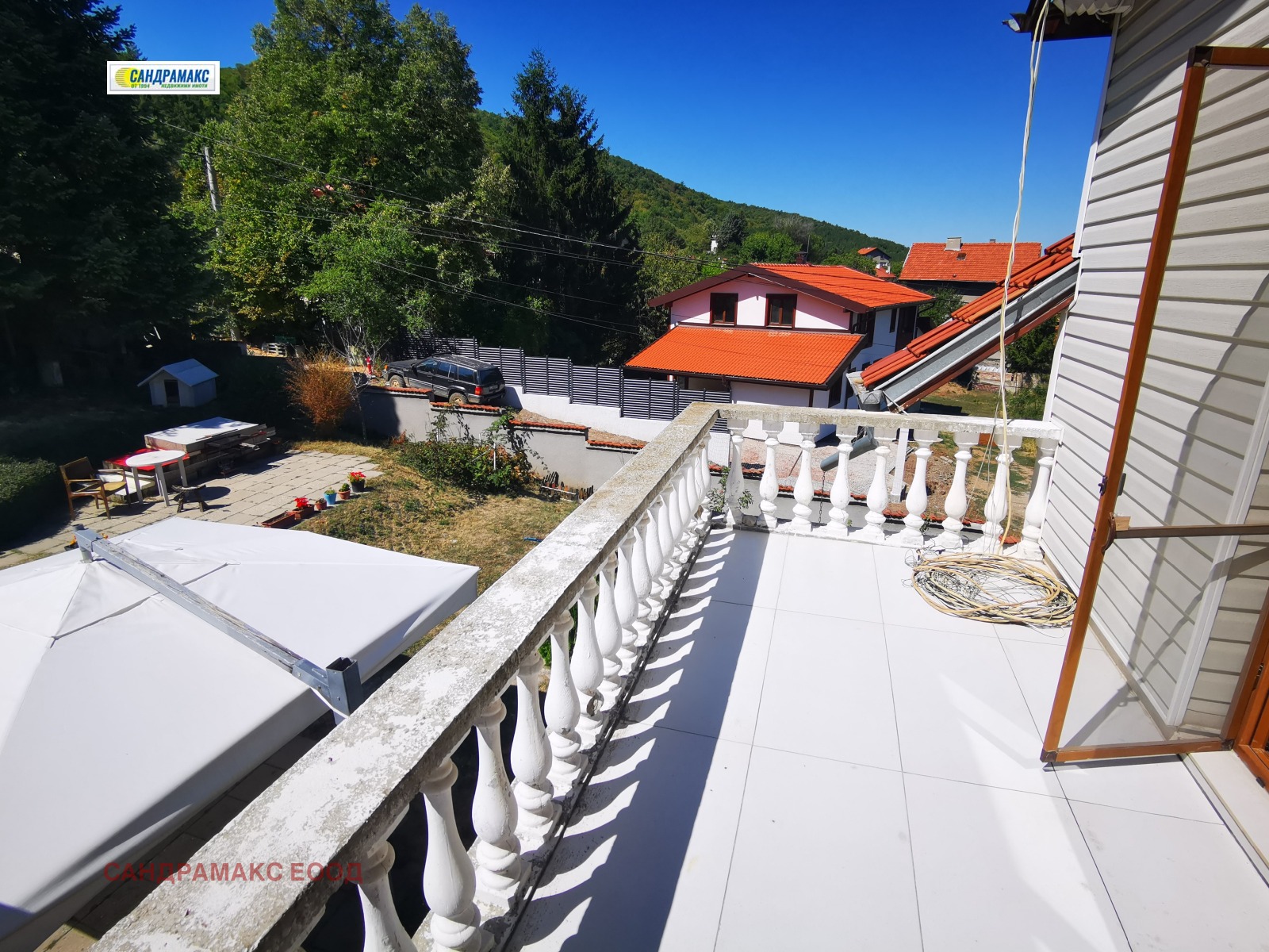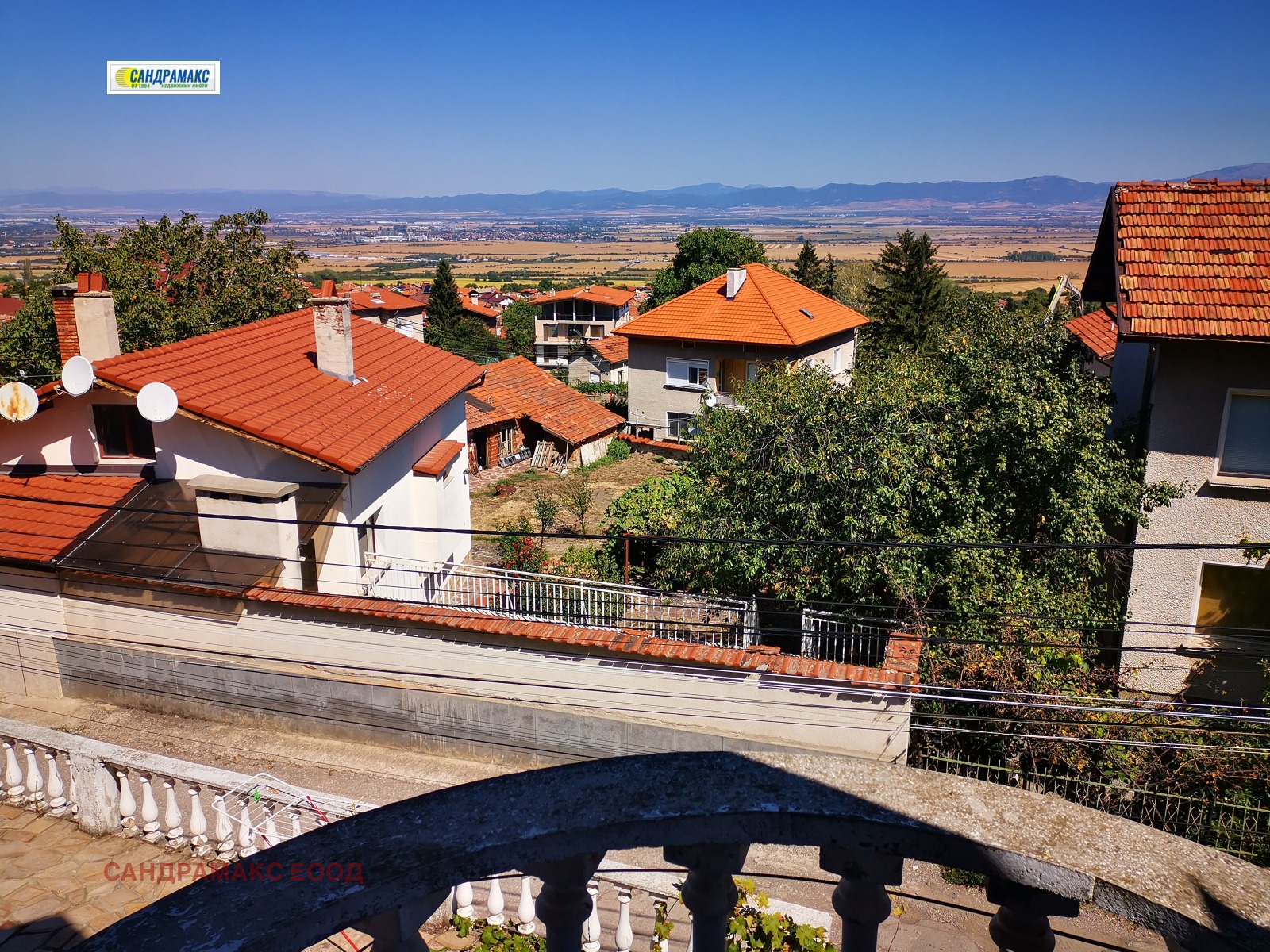 Местонахождение : Намира се в самото селище, в горната част под боровата гора, с впечатляваща ПАНОРАМНА гледка към столицата и стара планина. Имотът е разположен на три улици , ъглов.