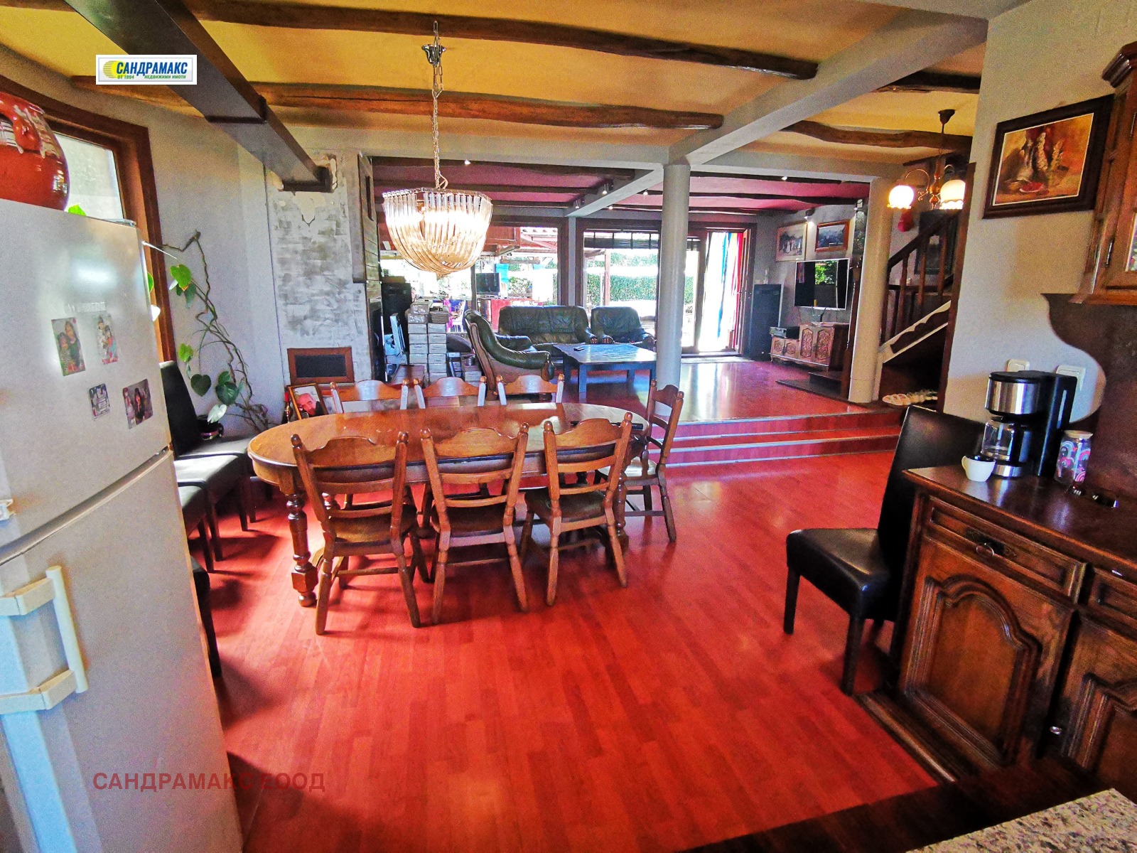 Брой стаи и бани : Къщата е с 5 (пет) спални, , 3 (три) бани с тоалетни, голяма дневна и трапезария с кухненски бокс, два гаража.