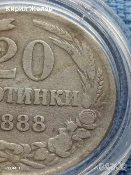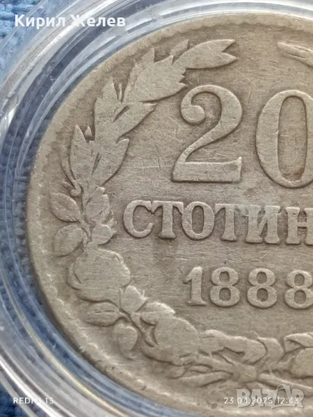 Рядка монета 20 стотинки 1888г. Княжество България Княз Фердинанд първи 34081