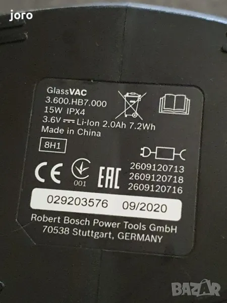 BOSCH GlassVAC е идеалния акумулаторен уред за почистване на прозорци в домашни условия. С него почистването става изключително лесно и бързо без каквито и да било ивици. Машината е иновативна с компактна конструкция, гарантираща страхотно почистване до самия край на всяка повърхност. Стъклочистачката е снабдена с патентовано гумено покритие за лесно плъзгане, а за различни приложения на използване е оборудвана с малка и голяма глава. Също така към стандартното оборудване са добавени и практични светодиодни индикатори, които сигнализират за изтощена батерия - червена светлина и състояние на зареждане - зелена светлина. Животът на батерията на BOSCH GlassVAC е 30 min.