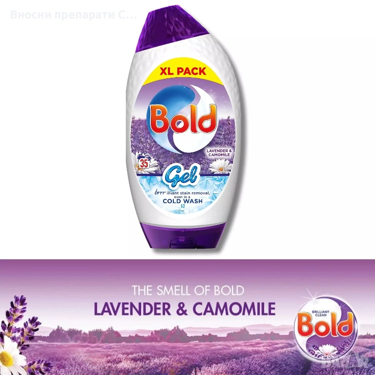 Болд 2в1 Ленор Лавандула и Лайка Ексел гел за пране 1,295л за 35 пранета