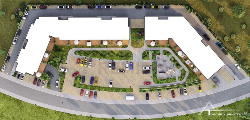 Вътрешния двор на сградата ще е максимално облагороден - пешеходни пътеки, озеленяване, детска площадка.