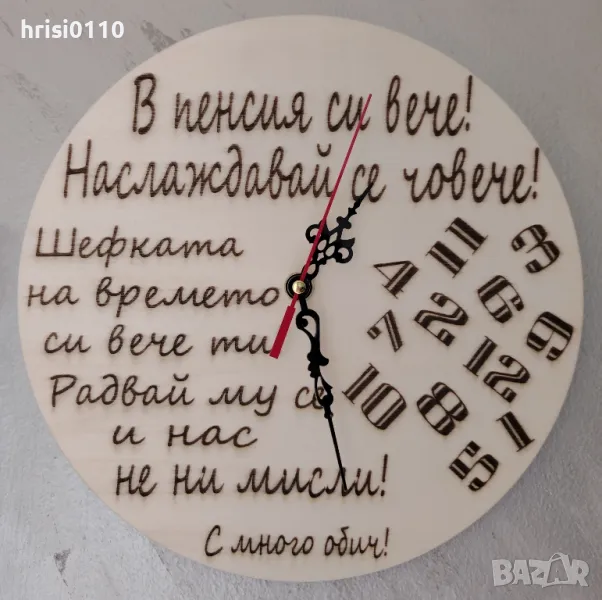 Ако все още се чудете с какво да зарадвате ваши близки и приятели, предлагам Ви гравирани часовници с изцяло Ваш проект.Диаметър от 26 см до 30 смСрок на изработка до 5 работни дни.