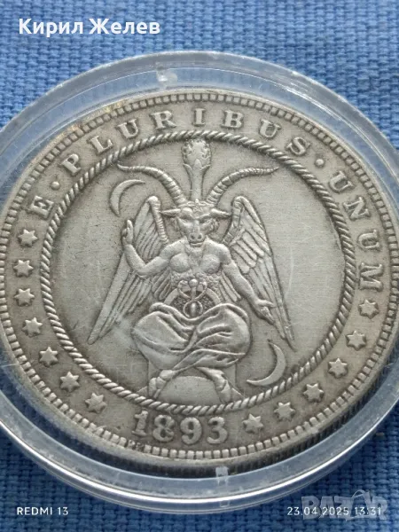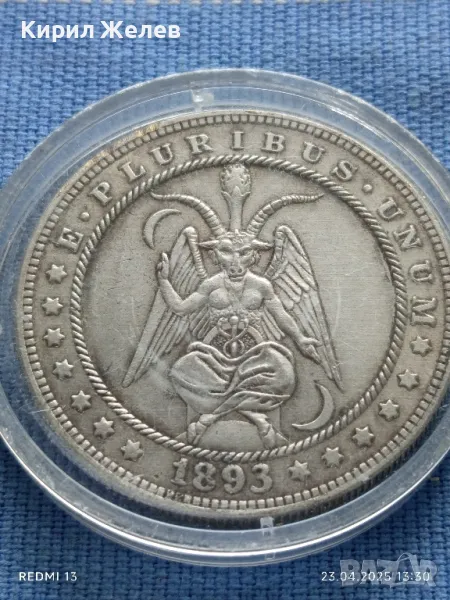 РЕПЛИКА на монета 1 долар 1893г. Америка Baphomet седнала окултна монета 31433 → Обява 50003817
