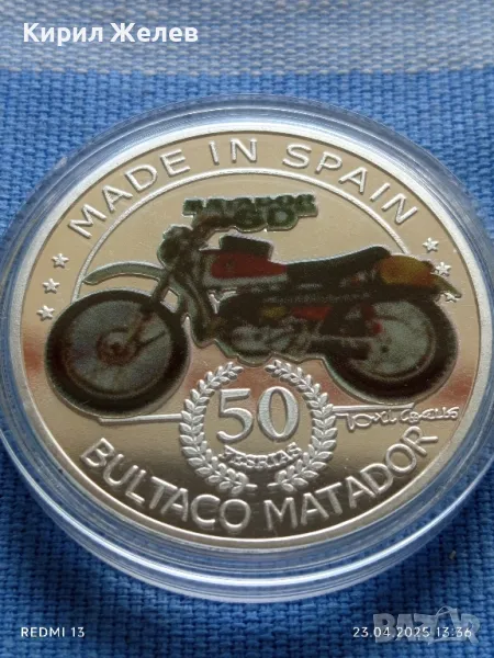 РЕПЛИКА на Монета Испания 50г. мотоциклет BULTACO MATADOR за КОЛЕКЦИОНЕРИ 39992