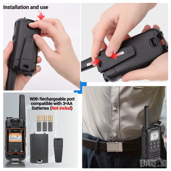 【Приложение за множество сцени】 Големият обхват на уоки токитата може да достигне 3 мили на открито. Ако има сгради, работният обхват ще бъде намален. Двупосочно радио за възрастни, с размер на длан, здрав материал и устойчив на падане, устойчиво на дъжд, много подходящо за различни сценарии на приложение като: пътуване, склад, круизен кораб, пикник на открито, къмпинг, езда, управление на хотел, склад, сграда, ресторант, училищна площадка и църква.