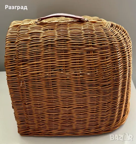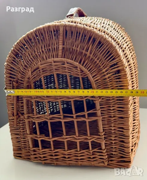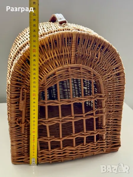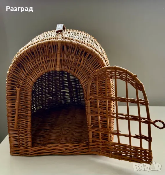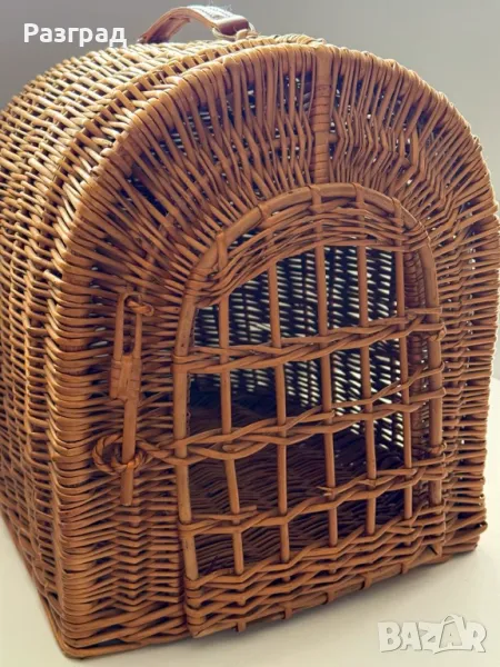 Тази плетена кутия е подходяща за котки и малки кучета. Идеалната комбинация от функционалност и естествен дизайн . Плетената мрежа осигурява адекватна вентилация, докато здравата дрьжка го прави лесен за носене . Висококачествената изработка от белена ракита прави кутията не само издръжлива, но и елегантна. Идеален избор за всеки, който тьрси удобен и безопасен начин за транспортиране на своя домашен любимец до ветеринар, разходки с кола или велосипед , или просто сигурно убежище за подслон и спокойствие.