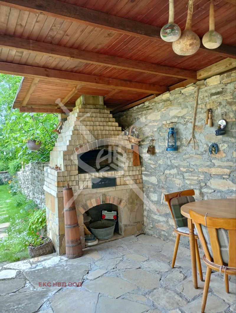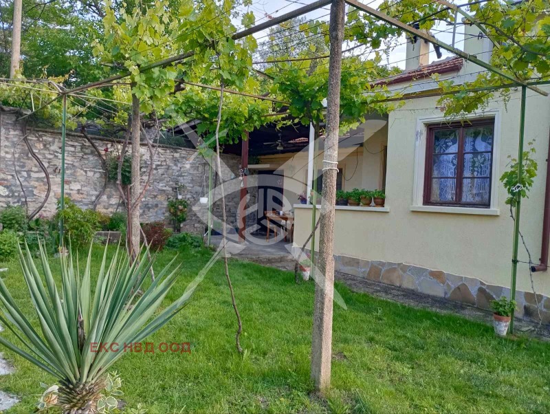 РАЗПРЕДЕЛЕНИЕ: Разполага с площ 80 кв.м., разгърната в следното функционално разпределение - хол, две големи и една малка спалня, баня. Кухнята е в отделна пристройка тип лятна кухня, към която има и голяма баня. Има и зидано барбекю с голям навес. Къщата се продава заедно с долепена зад двора й градина УПИ от 1450 кв. В градината има склад за дърва!