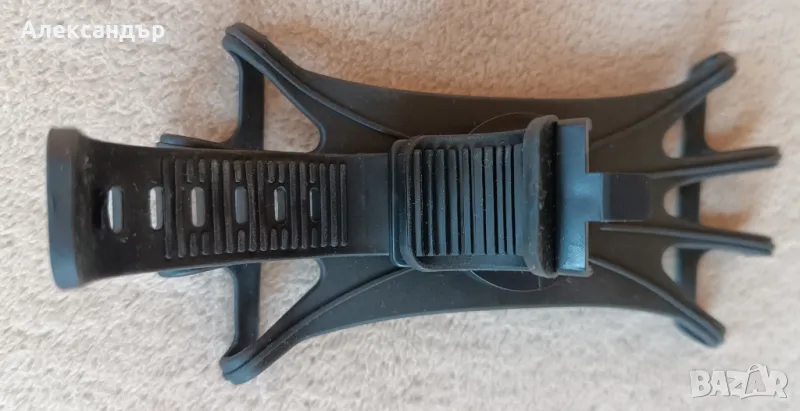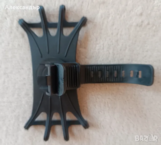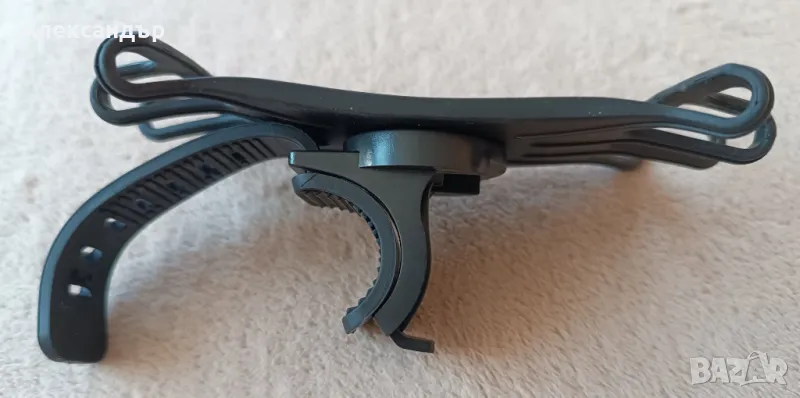 Мека силиконова стойка за телефон,която се захваща за кормилото на велосипеда!Доста еластична-може да се разтегля за почти всички размери телефони!Стойката се върти на 360градуса,захващането е много здраво!