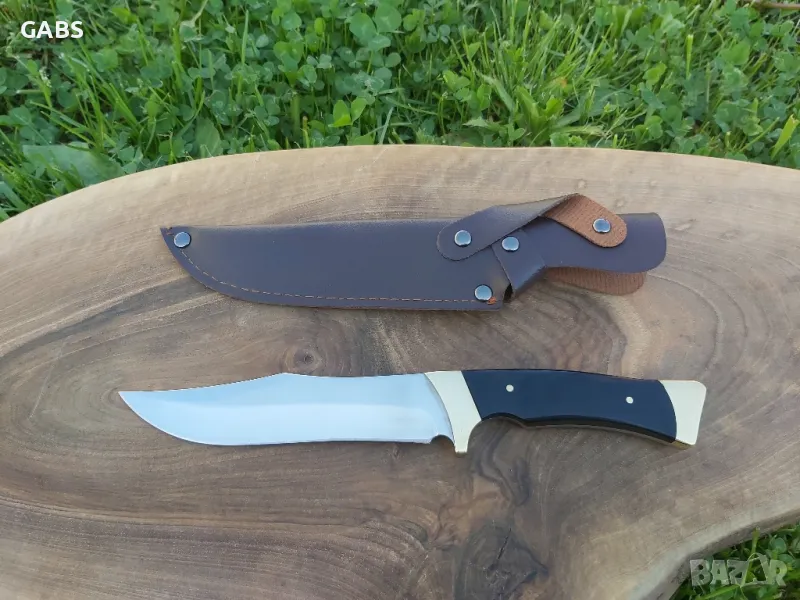 Ловен нож,фултанг с кания.Дръжка от тъмно дърво с месингов гард.