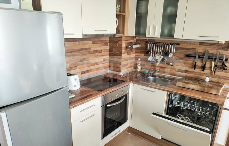 Апартаментът е напълно обзаведен и разполага с теракот на всички подове и теракот на стените в банята, климатик (отопление и охлаждане), както и кухненско обзавеждане, електроуреди (фурна, плот, микровълнова, съдомиялна, хладилник и вентилатор).