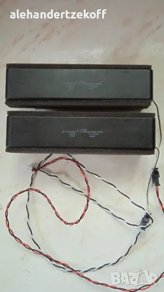 Високоговорителите са модел LYS 378G0110390GAB 4Ω 11W Philips TV и са в отлично състояние в комплект с окабеляването. Цената е за двете и може да се коментира.