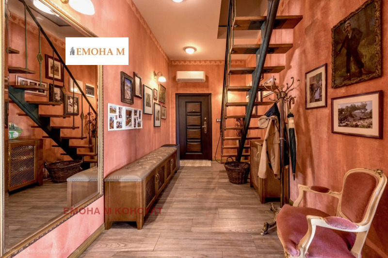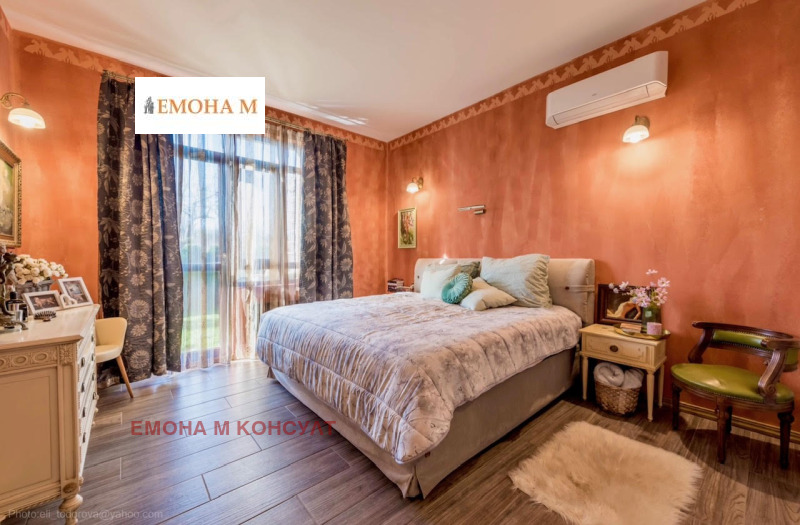 Къщата е с РЗП 330 кв.м., и има следното разпределение: коридор, просторна и слънчева дневна с камина и кухненски кът с френски прозорци и излаз на голяма веранда, пет спални, всяка една със собствена баня и тоалетна, килер, голяма веранда с барбекю зона, зона за отдих и релакс.