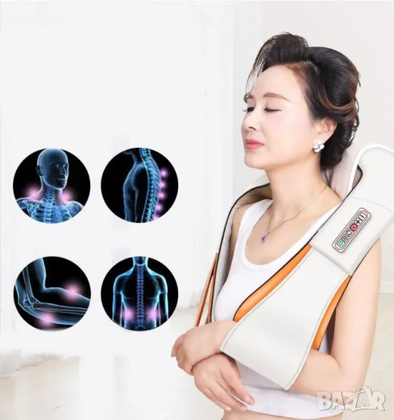 Шиацу 4D масажор за врат, гръб, плешки и рамене с функция затопляне