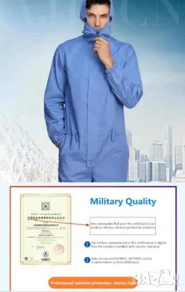 360° Цялостно защитно облекло с качулка. Дрехата е произведена в Китай по военна технология, с вградени стоманени метални нишки.