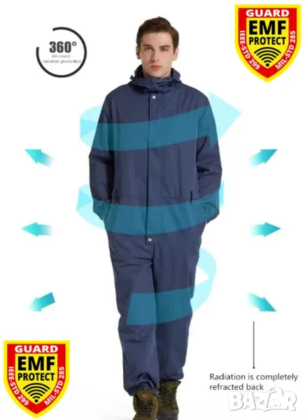 360°Екранирано Защитно Облекло Метални Нишки ЕМП АнтиРадиационен Щит срещу Електромагнитно Излъчване