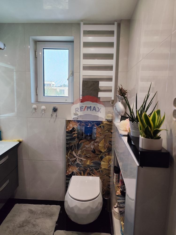 В къщата има три комфортни спални, осигуряващи тишина и лично пространство за всеки член на семейството. На разположение са две напълно оборудвани бани с тоалетни, както и перално помещение. Подовото отопление, в комбинация с високоефективна термопомпа Daikin и три климатика, осигурява целогодишен комфорт при ниски разходи.