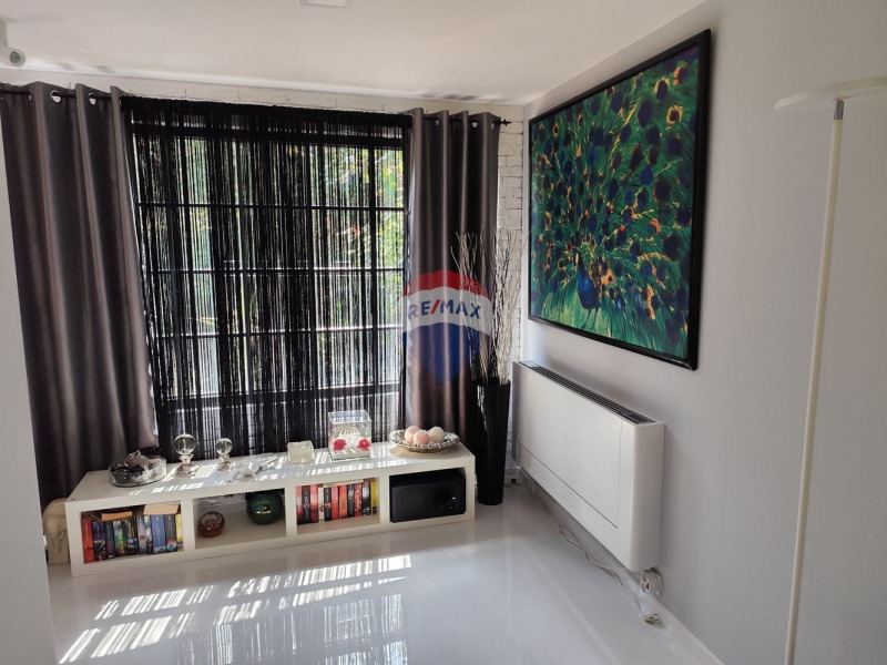 Имотът е с разгъната застроена площ от 240 кв.м, разпределена на два функционални и светли етажа. Първият етаж е с площ 143 кв. м, а вторият - 97 кв. м. Разполага с уютна дневна с камина, която плавно преминава в стилна кухня и трапезария. Отделно е обособена и просторна всекидневна, подходяща както за семейни събирания, така и за отмора след дълъг ден. Допълнително удобство е самостоятелният кабинет с втора камина прекрасно място за работа от вкъщи или усамотение с любима книга.