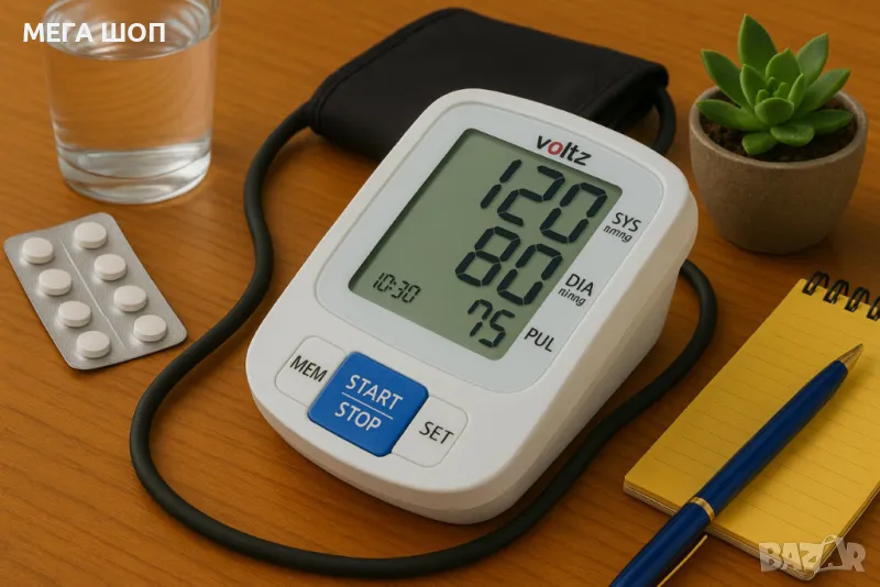 Апарат за кръвно налягане Voltz, Маншет, 2х90 позиции памет, LCD дисплей, Бял