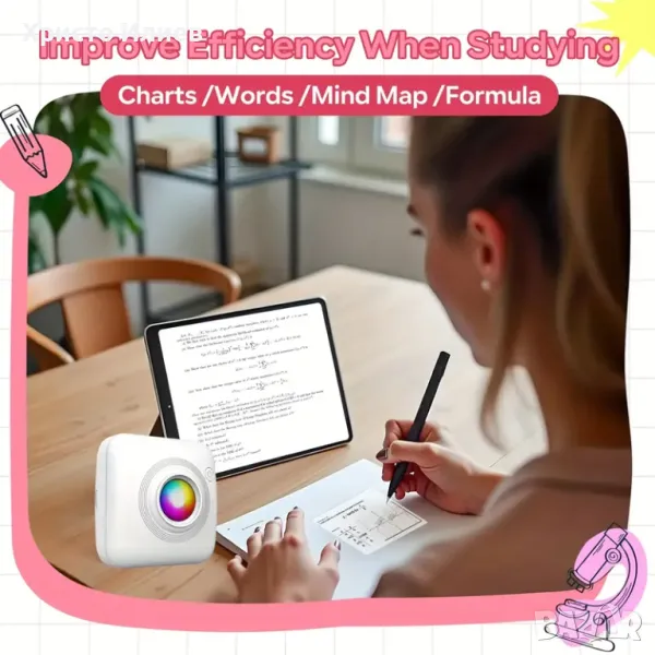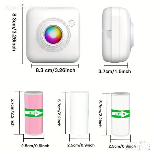 Термо принтер с RGB точка + 13 ролки хартия, фулмастри, торбичка, стикери
