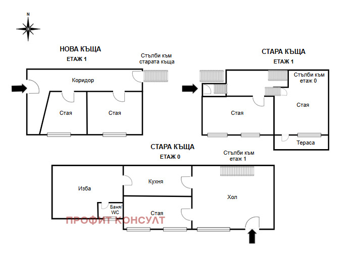 Къщата се намира в центъра на с. Самоводене, обл. Велико Търново. Разположена е на две улица, като от едната улица се влиза директно в двора. Къщата е разделена на нова и стара част. Новата част (36 кв.м.) е изцяло тухлена, на един етаж. Влиза се през входна врата от към главната улица и има две стаи с голям коридор, топла връзка със стълби към старата част. По-старата къща (53 кв.м.) е гредоред, на два етажа. Разполага с три спални, едната от които с тераса, хол от който се излиза на двора, кухня, баня с тоалетна и голяма изба.