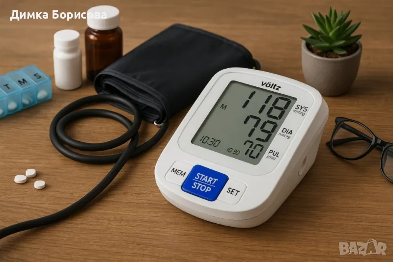 Апарат за кръвно налягане Voltz, Маншет, 2х90 позиции памет, LCD дисплей, Бял