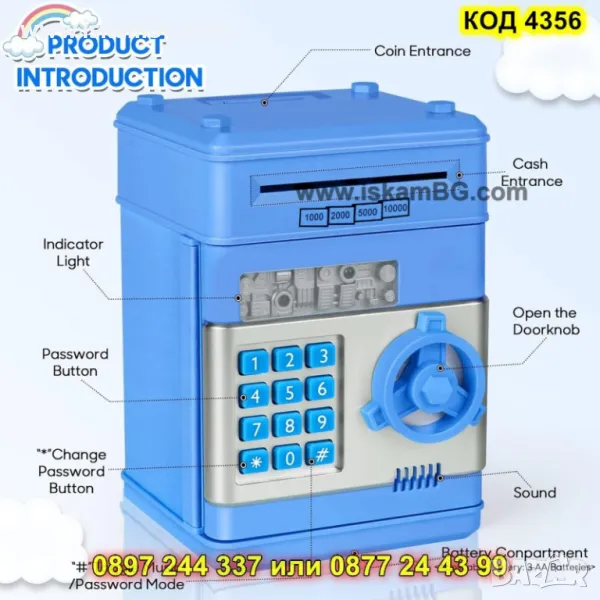 За допълнителна интерактивност, сейфът е обогатен със светлинни и звукови ефекти, които могат да се настроят и на английски език. Тази модерна касичка е чудесен начин да научите децата как да спестяват и планират разходите си, като същевременно се забавляват.