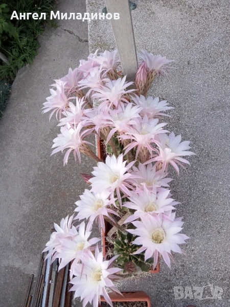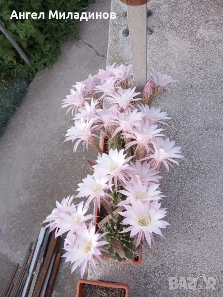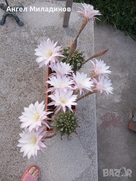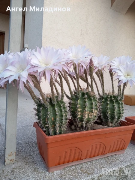 Предлагам 2 сандъчета с по 3бр.кактуси, бялоцъфтящи.Цена на сандъче 25лв. Цъфтят 2-3пъти годишно с по 20-30цвята едновременно за 1-2 дни.