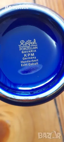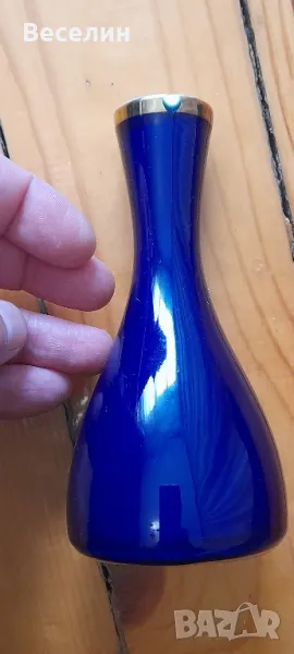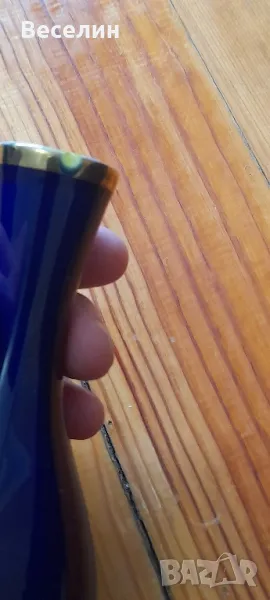 Страхотна кобалтова ваза син цвят с маркировка интересен дизайн височина 13,5 см леко чопче