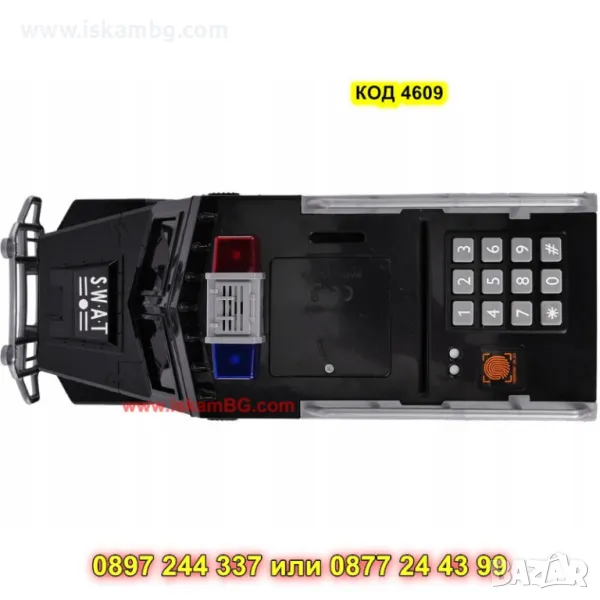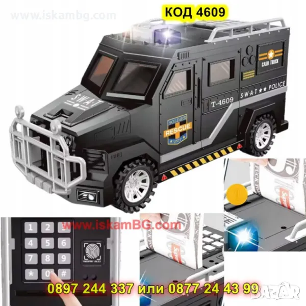 Тази уникална детска касичка полицейска кола съчетава забавление с финансово образование! Проектирана за младите полицаи, тя помага на децата да спестяват безопасно, като ги учи на финансова отговорност по забавен начин. С помощта на ПИН код и пръстов отпечатък, малките могат да "заключват" своите спестявания в колата, а реалистичните функции ще ги накарат да се почувстват като възрастни!