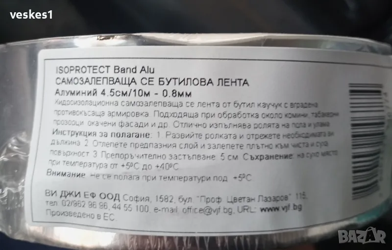 Izoprotect Бутилова лента 5см. алуминий → Обява 50009624