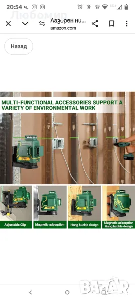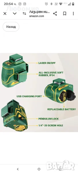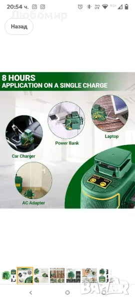 Лазерен нивелир 3D & 3 x 360°, Линеен лазерен зелен POPOMAN, USB акумулатор, самонивелиращ се и импулсен режим, Магнитна въртяща се основа, Допълнителна поддържаща скоба, Включен куфар за носене - MTM350B.акумулаторна батерия с голям капацитет от 5200mAh, която издържа по-дълго от повечето други лазерни нивелири. Може да работи и при директно свързване към източника на захранване без батерия. Индикаторът на батерията показва оставащия заряд, а защитата от презареждане предотвратява презареждане на батерията.