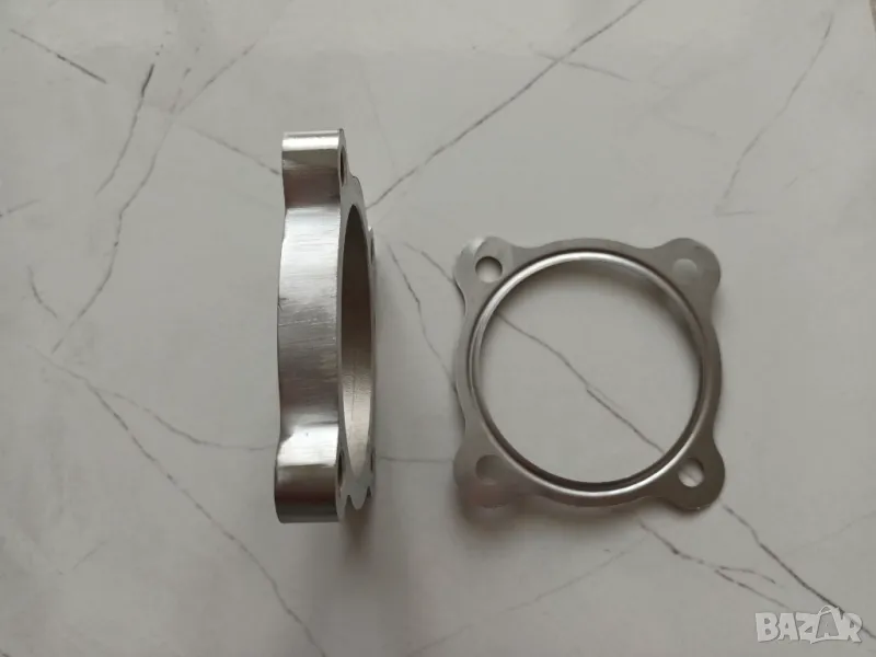 Предлагам нов неръждаем даунпайп фланец с изход на ф76 комплект с гарнитура.