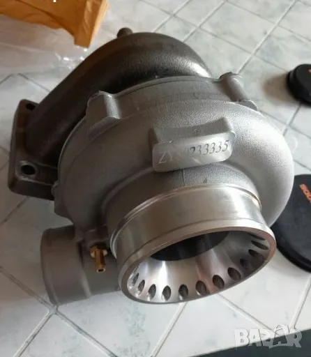 Нова турбина GT3582 с гарнитури комплект. Вход на студената част 104мм. Подходяща за сетъпи до около 600 коня. Подходяща за двигатели с работен обем от 2500 до 6000 куб.см.