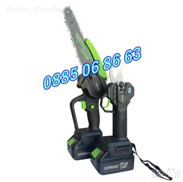 Комплект акумулаторна резачка и лозарска ножица с дисплей 36V 8Ah с телескопичен прът