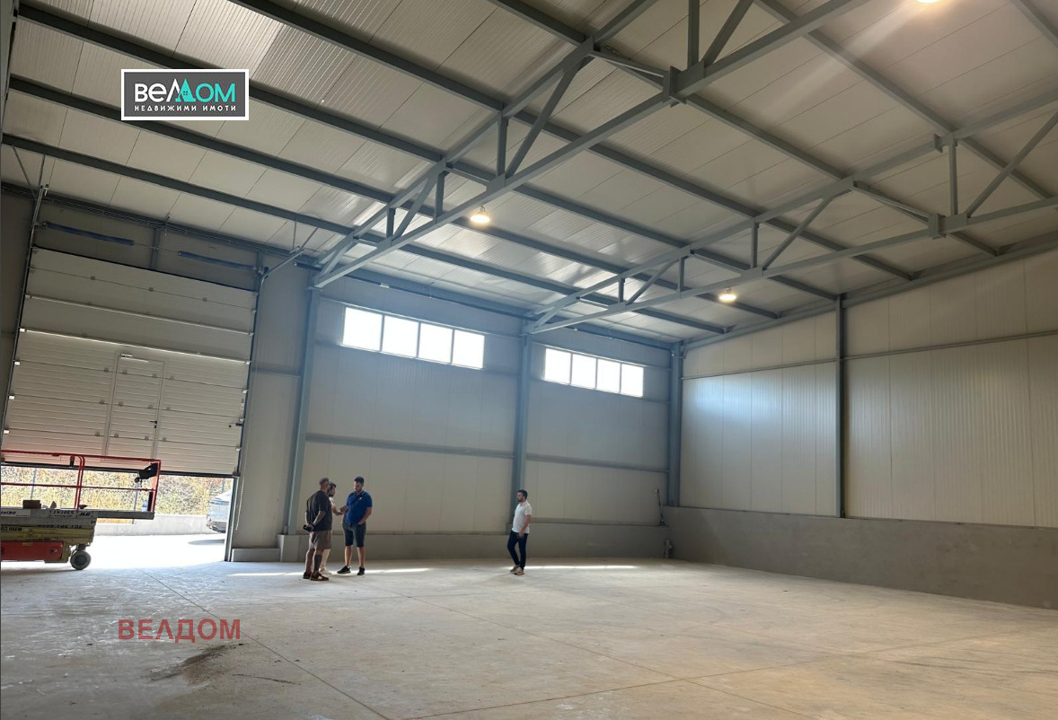 Агенция ВЕЛДОМ дава под наем склад 1260 m2. Метална конструкция, сандвич панели 10 см- гладки стени и таван, под-шлайфан бетон, двор-асфалт, паркоместа, WC. Височина на склада 7,00 м. С големи врати-ролетни щори, на кота нула, тир-подход, трифазен ток. Възможно е добавянето на още 630 м2 или 1260 м2.
