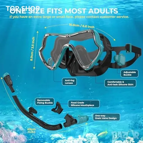Нови 2 броя Сноркел комплект за възрастни - Маска с анти-мъгла и лесно дишане